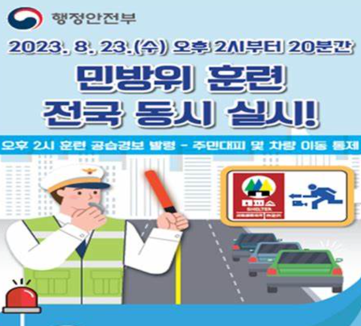2023년 8월 23일 수요일 오후 2시, 전국민 민방위훈련이 실시됩니다.